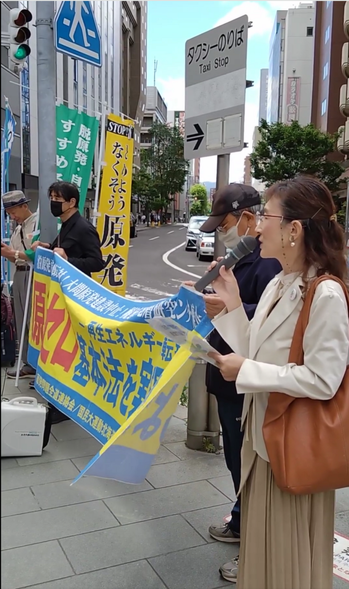 ※株主総会終了後に提案株主5名で、12時15分から開始となっていましたが、原発連の街頭活動の場所(札幌駅北口西側)へ移動し、